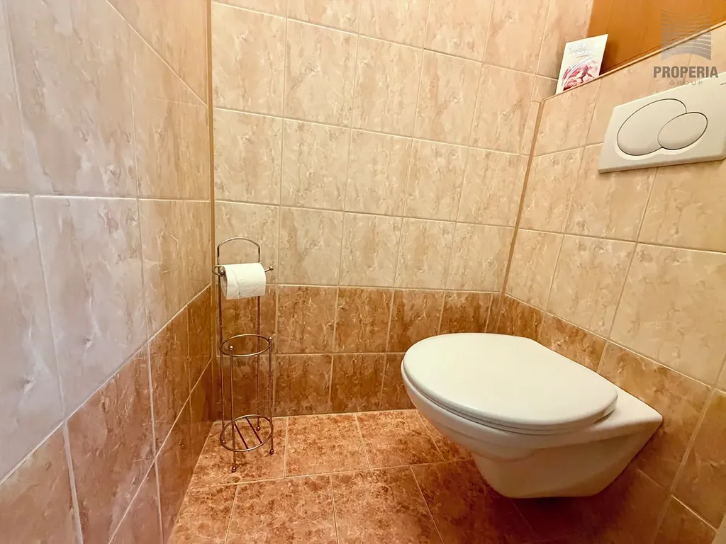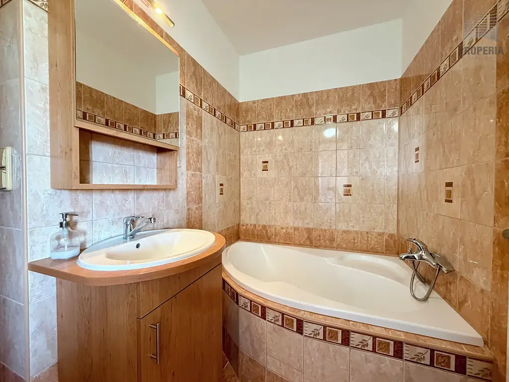 Rekonstruované bytové jádro poskytuje koupelnu s vanou a prostorem pro pračku a sušičku, WC je samostatné. Kuchyňská linka s indukční varnou deskou, vestavnou horkovzdušnou a mikrovlnnou troubou, chladničkou s mrazákem a myčkou nádobí - viz. přiložená fotodokumentace. Z dalšího vybavení zůstane k dispozici i veškerý vyobrazený nábytek. Kromě sklepa je k dispozici i kočárkárna/kolárna.