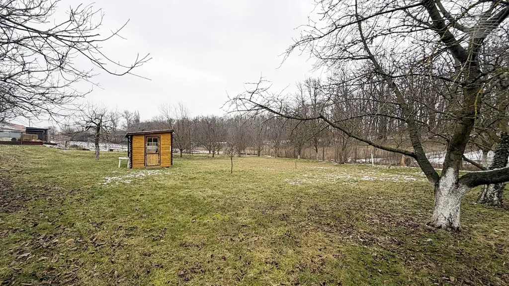 Vzrostlá zeleň: Pozemek je v současnosti veden jako ovocný sad, což novému majiteli zajišťuje příjemné přírodní prostředí ihned po koupi.