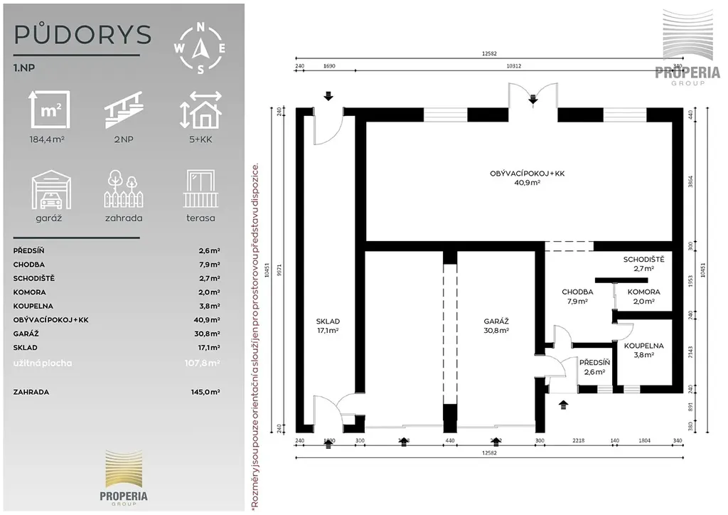 Zahrada o ploše 145 m² je místem, kde vznikají vzpomínky. Nabízí dostatek prostoru pro dětské hry, rodinné oslavy i klidné večery u venkovního krbu. Lze uvažovat i o vybudování bazénu a vytvořit tak vlastní letní oázu.