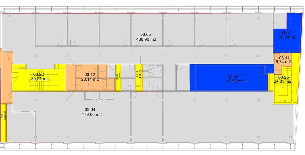 Kanceláře jsou řešeny jako moderní a efektivní pracovní prostředí s kombinací otevřeného prostoru a samostatných kanceláří či zasedacích místností. Dispozice umožňuje flexibilní uspořádání dle potřeb nového nájemce. Velkou výhodou je stávající fit-out, který výrazně šetří čas i náklady spojené s vybavením kanceláře.