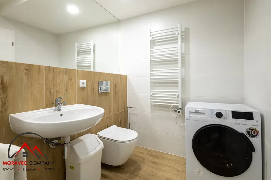 Byt je plně vybaven – nechybí nábytek, spotřebiče, nádobí, ložní prádlo ani ručníky. Stačí si jen přinést osobní věci a můžete bydlet!