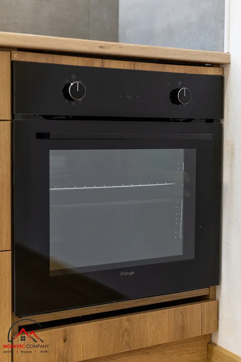 V bytě je pokoj s kuchyňským koutem a další samostatný pokoj. Vybavení bytu zahrnuje kuchyň s elektrickou troubou a varnou deskou a digestoří. Koupelna je vybavena vanou, WC je samostatné.