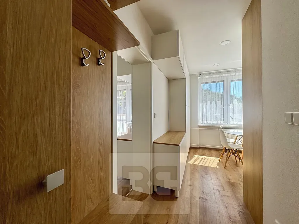 Přicházíme s nabídkou pronájmu krásného bytu 1+1 na ulici Popkova v Kuřimi! Tento útulný byt o celkové užitné ploše 32 m² se nachází ve velmi dobrém stavu domu ve 3. patře. V bytě najdete vše, co potřebujete ke komfortnímu bydlení. Prostorná předsíň s úložným prostorem na míru, po rekonstrukci byt také nabízí krásnou koupelnu, plně vybavenou kuchyni s všemi spotřebiči, stolem a židlemi. Vše na míru od truhláře. Prostorný pokoj je zařízen gaučem, TV stěnou a vlastními úložnými prostory na míru. K dispozici je také balkón s výhledem a příjemným posezením, sklep pro další úschovu a klimatizace. Tento krásný byt je ideálním místem pro pohodlný život. Nezaváhejte a kontaktujte nás pro další informace či prohlídku!