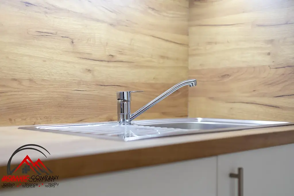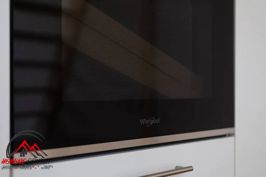 Vybavení bytu zahrnuje kuchyň s elektrickou troubou, indukční varnou deskou, digestoří, zabudovanou lednicí a mikrovlnnou troubou. Koupelna je vybavena sprchovým koutem, pračkou a WC. Ohřev vody zajišťuje elektrický bojler.