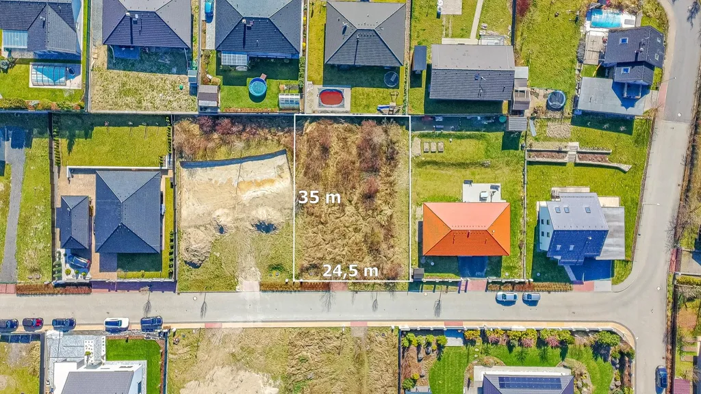 Pozemek je rohový, orientovaný na jihozápadní stranu, napojený na obecní komunIkaci s veřejným osvětlením, umístěný na okraji zástavby s příjemným soukromím a výhledem do krajiny.