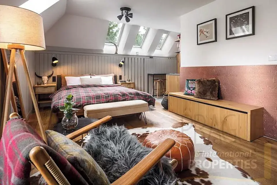 Byt je plně vybaven luxusními zařizovacími předměty a vestavěným designovým nábytkem.