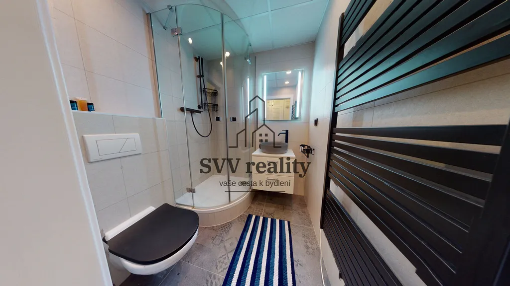 Byt o podlahové ploše 51 m² se skládá z předsíně s osvětlenou vestavnou skříní, koupelnou se sprchovým koutem,