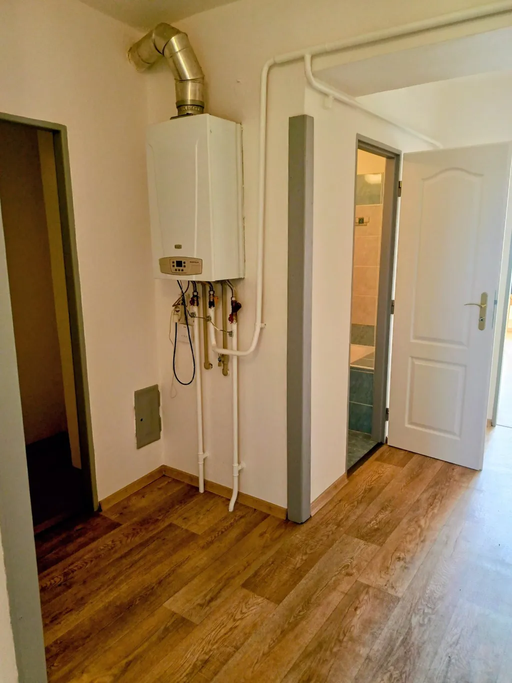 Vytápění a ohřev vody zajišťuje vlastní plynový kotel v bytě.