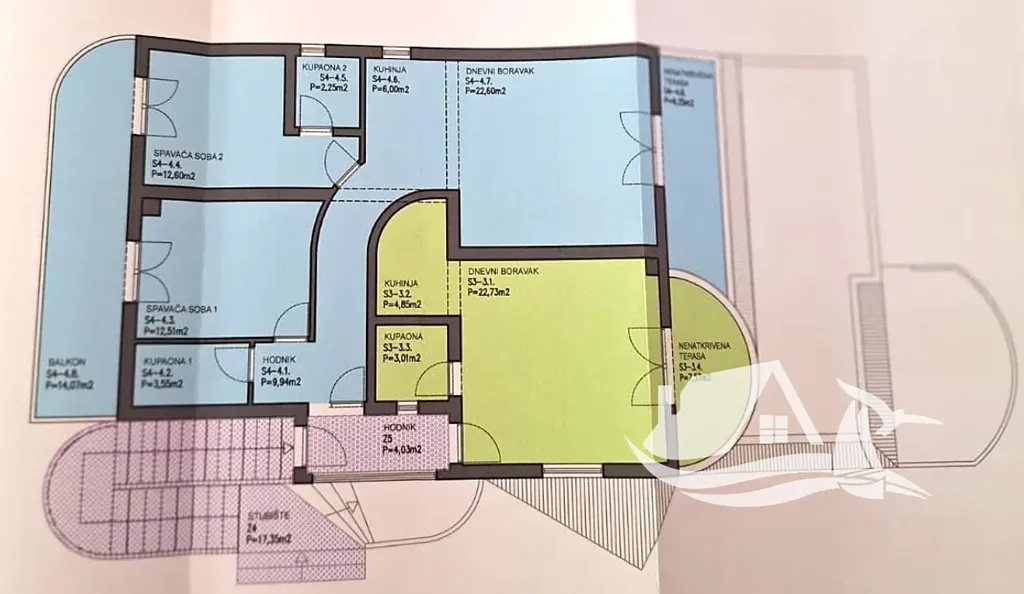 Venkovní část přináší další rozměr bydlení. Balkon o velikosti 3,52 m² nabízí příjemný výhled na moře a Pažská vrata a vytváří ideální místo pro ranní kávu nebo večerní odpočinek. Menší terasa o velikosti 2,31 m² pak rozšiřuje možnosti využití o prostor pro relaxaci, zeleň nebo jednoduché posezení. Pláže Tartanovo a Marjanovo jsou vzdálené přibližně 150 metrů, takže moře se stává přirozenou součástí každodenního života.
