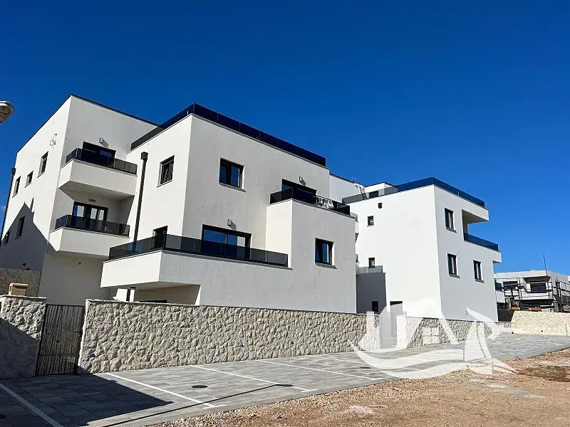 Apartmán o dispozici 3+kk se nachází v přízemí novostavby a disponuje celkovou hrubou plochou 161 m², přičemž užitná plocha činí 66,08 m². Prakticky řešený interiér tvoří obývací prostor s kuchyní, dvě ložnice, koupelna a lodžie o velikosti 3,44 m². Každý pokoj je vybaven klimatizací, která zajišťuje komfort i během horkých letních dnů. Severojižní orientace přináší dostatek světla i příjemné proudění vzduchu a výhled na moře, ostrov Vir a širší okolí dodává celému prostoru jedinečný charakter.