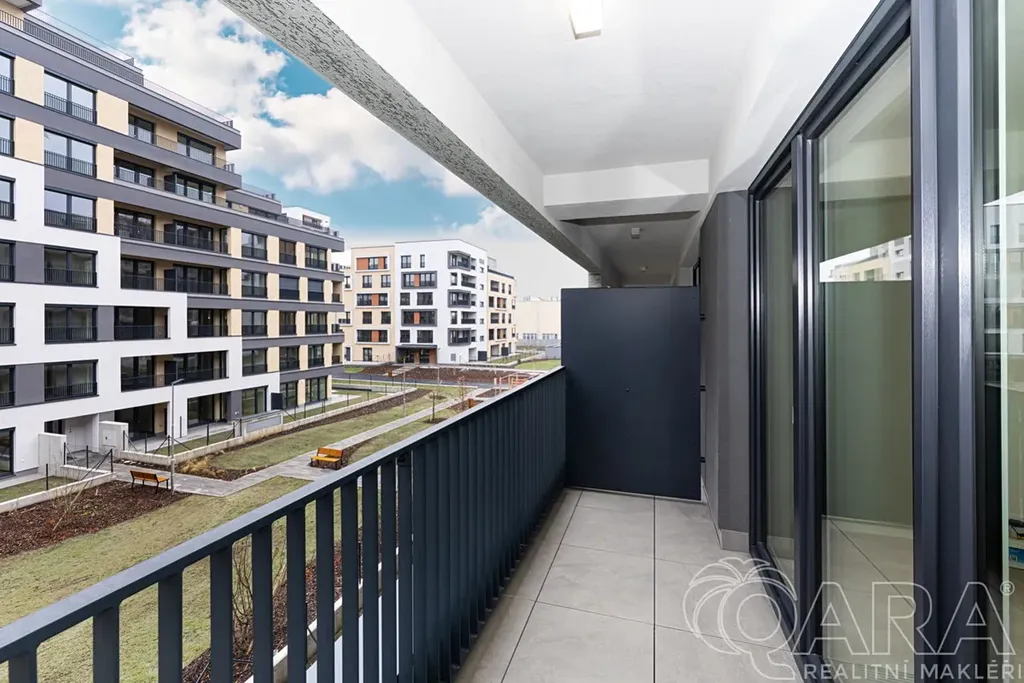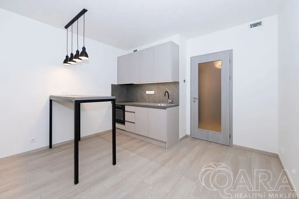 Byt je dispozičně řešen vstupní chodbou s vestavěnou šatní skříní, koupelnou s toaletou, sprchovým koutem, a dále obytnou místností s kuchyňskou linkou a vstupem na lodžii. Byt je orientován mimo rušnou silnici a tramvajovou trať, což zajišťuje klidné bydlení i příjemný výhled do vnitrobloku. Součástí vybavení je kuchyňská linka s jídelním stolem, velká vestavěná skříň, robotický vysavač a modem pro připojení k internetu. K bytu náleží také sklepní kóje v suterénu domu. Byt se vyznačuje velmi nízkými provozními náklady, energetická náročnost budovy je třídy B a je vybaven rekuperační jednotkou. Zúčtovatelné zálohy činí 2.500,-Kč měsíčně, plus elektřina a do budoucna fond oprav.