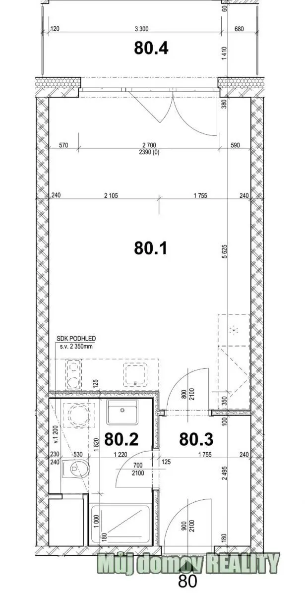 Pronájem bytu 1+kk, Praha - Vysočany, Poděbradská, 35 m2