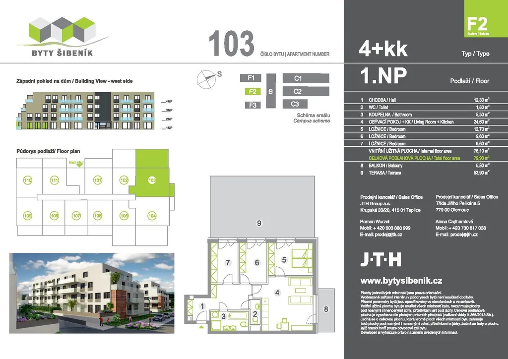 Pozn: K bytu je povinné přikoupit dvě parkovací stání v podzemní garáži.