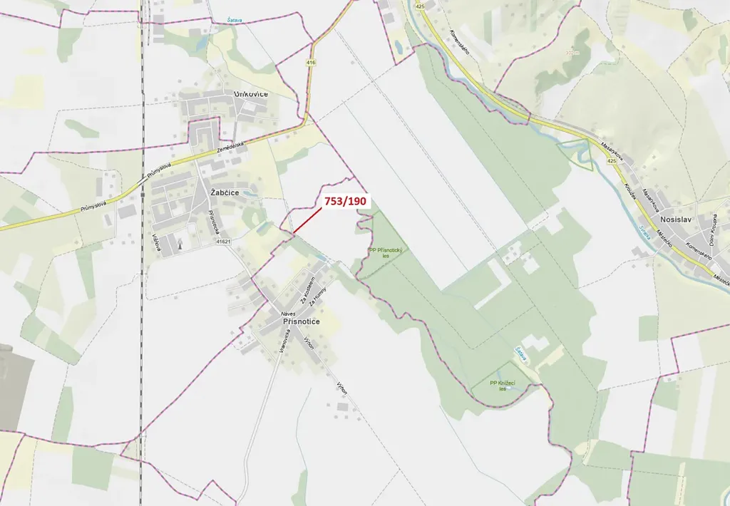 Lesní pozemek o výměře 3 m2, parcelní číslo 753/190, podíl 1/1, katastrální území Přísnotice, obec Přísnotice, obec s rozšířenou působností Židlochovice, okres Brno-venkov, Jihomoravský kraj.