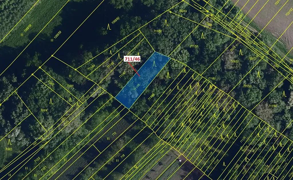 Lesní pozemek o výměře 569 m2, parcelní číslo 711/46, podíl 1/1, katastrální území Přísnotice, obec Přísnotice, obec s rozšířenou působností Židlochovice, okres Brno-venkov, Jihomoravský kraj.