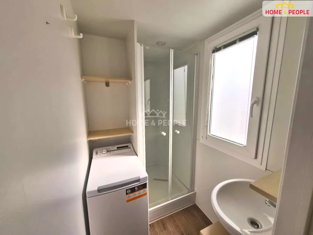 Díky velké terase získáte luxusní venkovní prostor, který u běžných mobilheimů často chybí. Dům je kompaktní, snadno se převáží a usazuje (kovová konstrukce,kola). Ev. číslo: 32149.