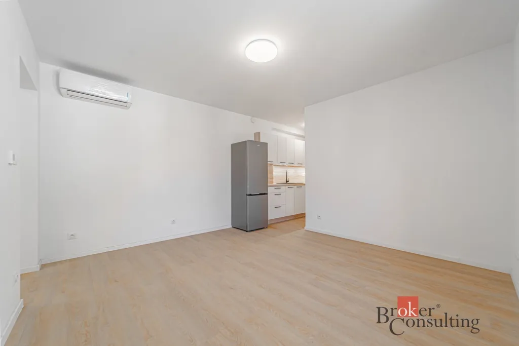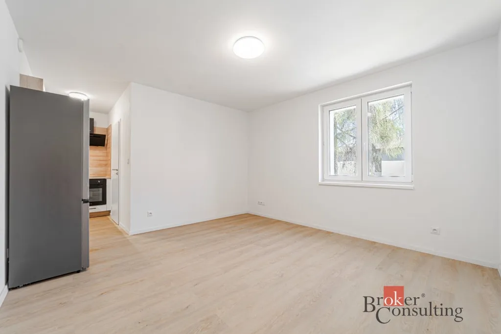 Dispozice bytu je prakticky řešená – prostorný obývací pokoj s kuchyňským koutem tvoří hlavní obytnou zónu. Kuchyň má novou kuchyňskou linku včetně spotřebičů: indukční varnou desku, elektrickou troubu a digestoř. Koupelna nabízí prostorný sprchový kout a toaletu. Byt doplňuje vstupní chodba. V suterénu domu na vás čeká sklep o výměře 8,9 m², který ocení každý, kdo potřebuje extra úložný prostor.