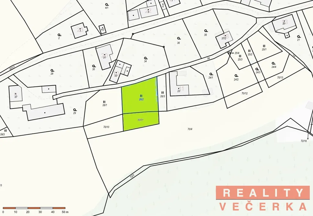 - příjezd k pozemku je po obecní zpevněné komunikaci, jedná se o slepou ulici, do které zajíždějí převážně jen zde bydlící majitelé nemovitostí,