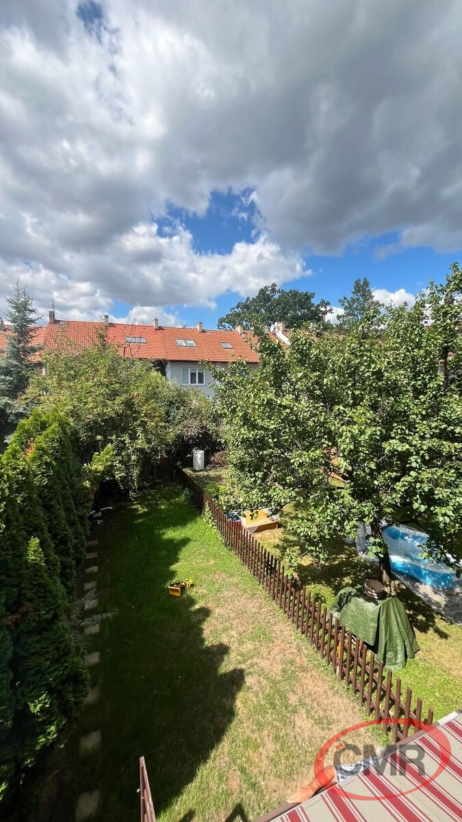 Velmi pěkný, útulný řadový RD dispozičně řešený 4+kk 120 m2 s balkonem, terasou předzahrádkou a zadní zahrádkou, situovaný v atraktivní, vyhledávané lokalitě P-10, Strašnice. V 1PP je obývací pokoj s kuchyňským koutem se vstupem na terasu a zadní zahrádku, koupelna se sprchovým koutem společná s WC a vstupní chodba z předzahrádky. V 1NP jsou dvě samostatné prostorné ložnice, jedna s balkonem orientovaným na Z do zadní zahrádky, dále je zde prostorná koupelna s vanou a bidetem společná s WC. V podkroví je velký otevřený prostor s úložnými prostory. Kuchyňská linka je vybavena sporákem se sklokeramickou deskou s horkovzdušnou troubou, lednicí a myčkou. Topení a ohřev vody vlastním plynovým kotlem. Jedná se o velmi příjemné, klidné místo obklopené zelení. velkou výhodou je výborné dopravní spojené do centra cca 20 min . V místě veškerá občanská vybavenost. Volné ihned! Vřele doporučuji prohlídku!