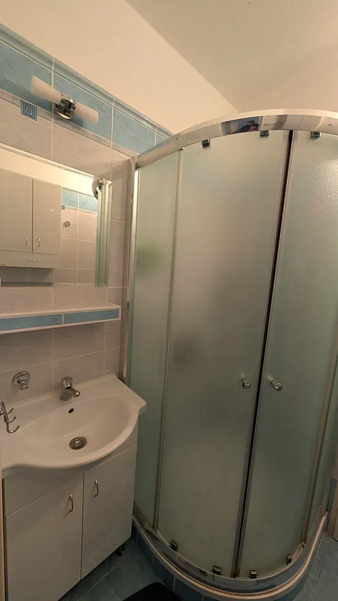 Koupelna prošla rekonstrukcí včetně bytového jádra. Součástí bytu je také velmi prostorná vstupní chodba s velkými vestavěnými šatními skříněmi, které poskytují nadstandardní úložný prostor.