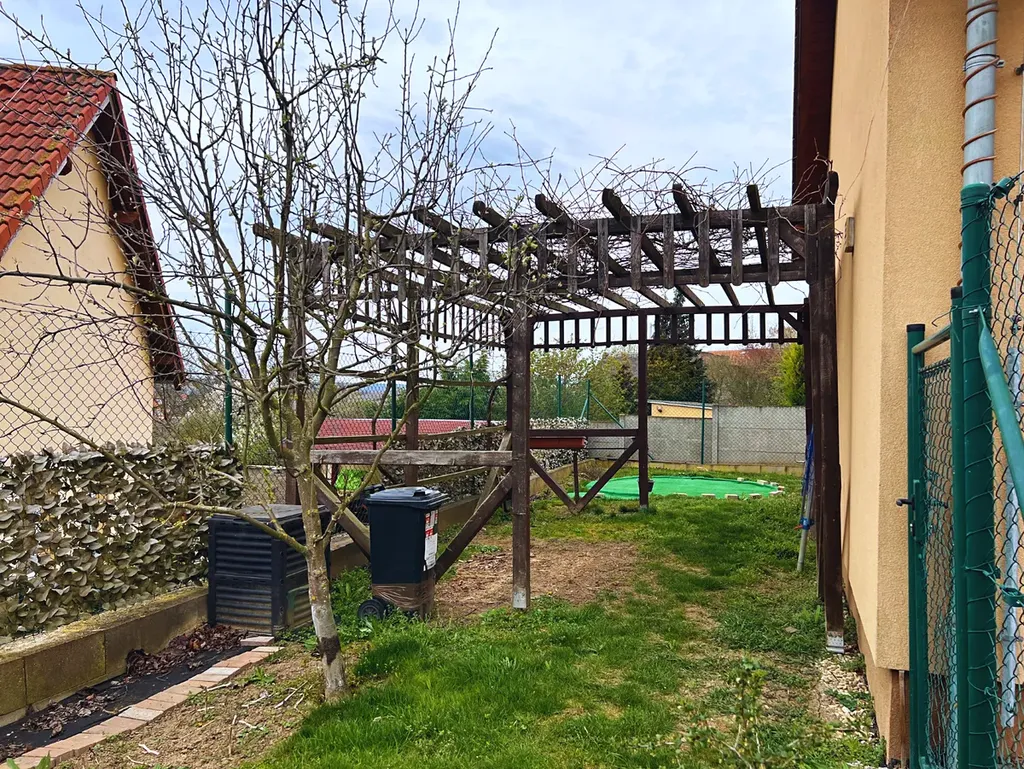 Zahrada s terasou, bazénem a zahradním domkem poskytuje zátiší pro odpočinek po práci, relaxaci, grilování atd.