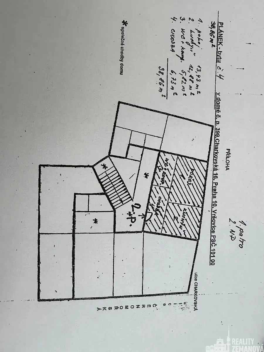 Byt o dispozici 1 + 1 se nachází ve 2. nadzemním podlaží domu s okny orientovanými do Charkovské ulice. Lokalita nabízí výbornou dopravní dostupnost – jen pár minut chůze od Vršovické náměstí a tramvajové zastávky Moskevská. V okolí je kompletní občanská vybavenost, množství obchodů, kaváren, restaurací i parků.