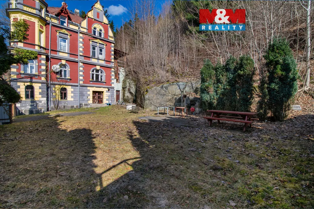Na prodej unikátní vícepatrová prvorepubliková vila v Janově nad Nisou, v těsné blízkosti Jizerských hor, ideální pro investory i podnikatele, aktuálně provozovaná jako dlouhodobé ubytovací zařízení s doložitelným výnosem. V objektu je nyní dlouhodobě ubytováno 18 zaměstnanců společnosti Denso, což zajišťuje pravidelný a stabilní příjem a okamžitý cashflow. Objekt o užitné ploše cca 400 m² se zahradou 450 m² nabízí 18 neprůchozích pokojů s kapacitou až 50 lůžek, vybavenou kuchyň, vstupní halu, 10 koupelen, 10 toalet a technické místnosti. Dům je napojen na elektřinu, kanalizaci, má vlastní studnu a plynové topení s ohřevem vody. Parkování je na vlastním pozemku. V přízemí jsou prostory po bývalé Pizzerii U Čerta, vhodné pro gastronomii, recepci či rozšíření služeb. Lokalita nabízí celoroční vyžití – cyklotrasy, běžecké i sjezdové tratě, přírodu. V obci je vybavenost, další služby v Jablonci a Liberci. Nemovitost je ideální volbou jako bezpečná investice i základ pro další rozvoj.