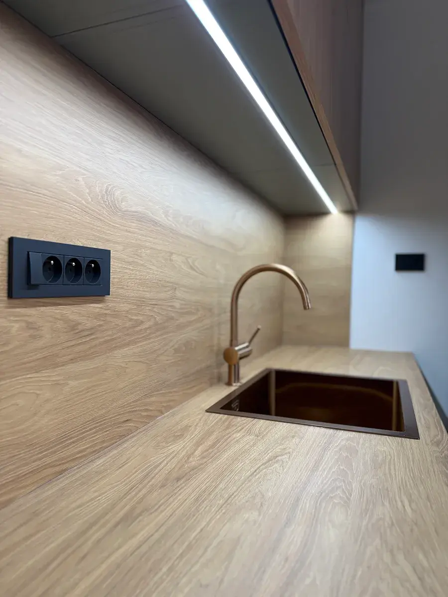 • Chytré řešení: Nenápadně integrovaný prostor pro pračku, sušičku a domácí příslušenství, který neruší design bytu.