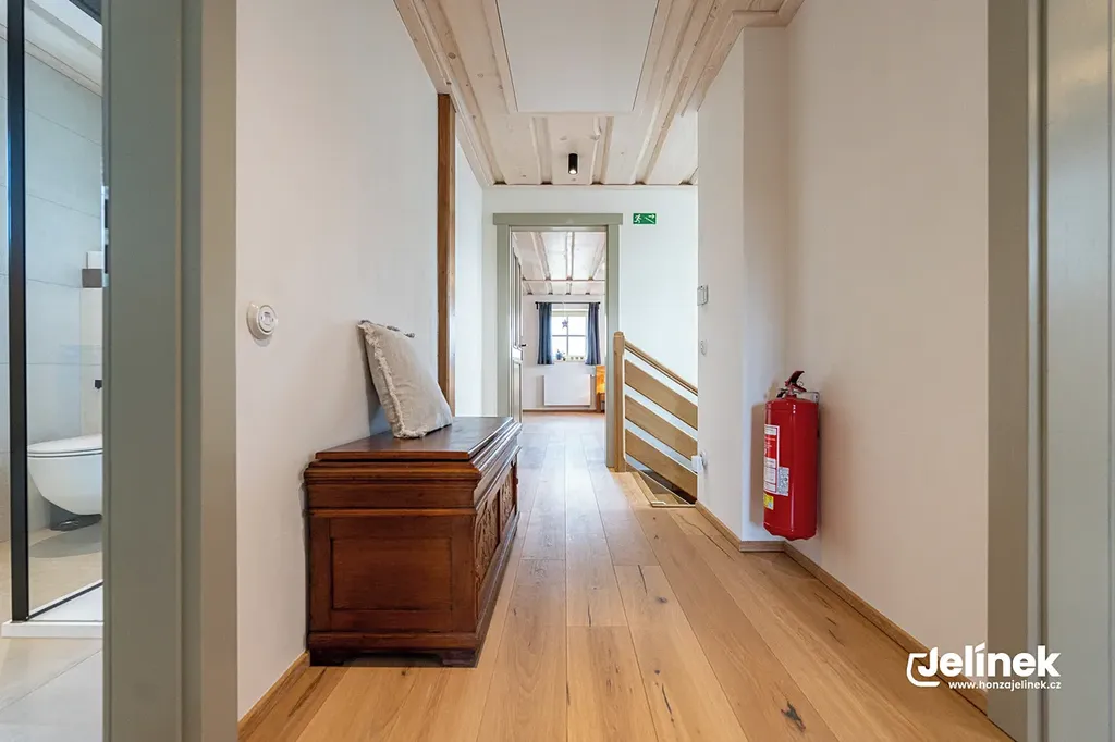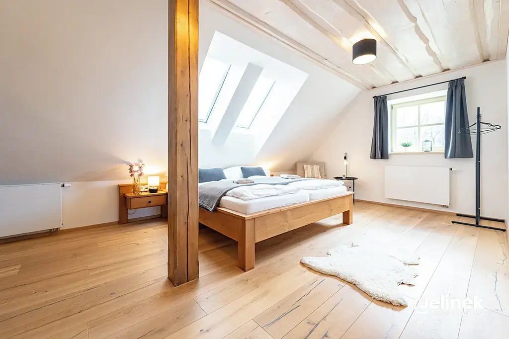 - Vybavení: Kompletní autorský interiér z masivního dřeva, bez nutnosti jakýchkoliv dalších investic pro pokračování pronájmu.