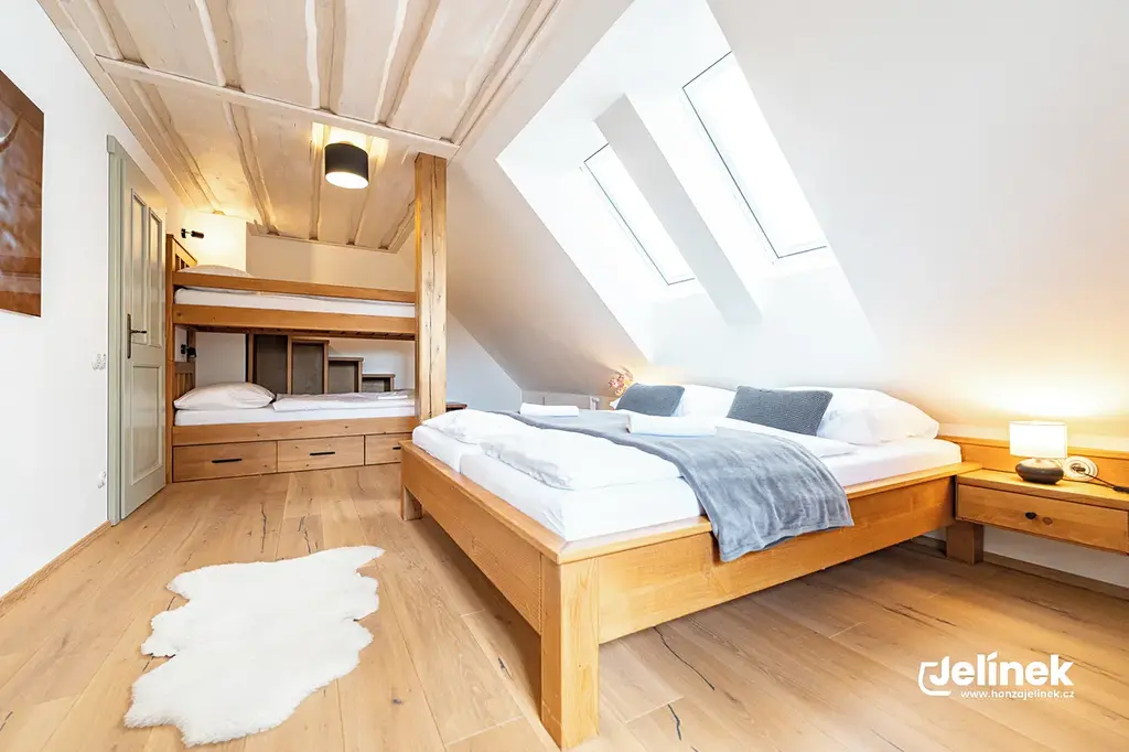 - Kapacita: 12 plnohodnotných lůžek (ideální pro spřátelené rodiny nebo teambuildingy)