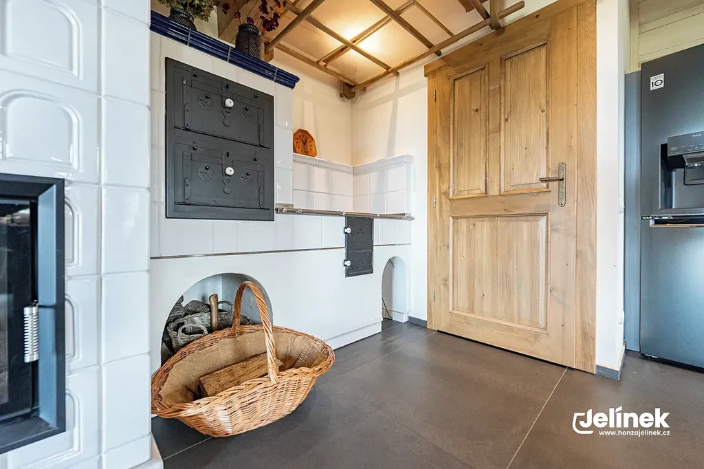 - Vytápění: Bezstarostný elektrokotel kombinovaný s kachlovými kamny s výměníkem.