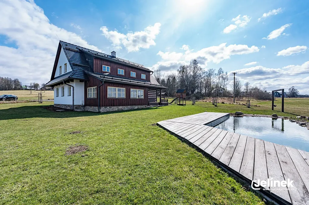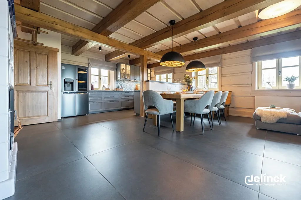 Díky platné stavební uzávěře v širokém okolí nabízí místo to nejcennější – naprosté ticho, klid a noční oblohu bez světelného smogu. Hosté i vy oceníte přírodní koupací bio jezírko s terasou, obrovskou světnici s na zakázku vyrobenou masivní kuchyní a kachlovými kamny s pecí, která tvoří srdce celé roubenky.
