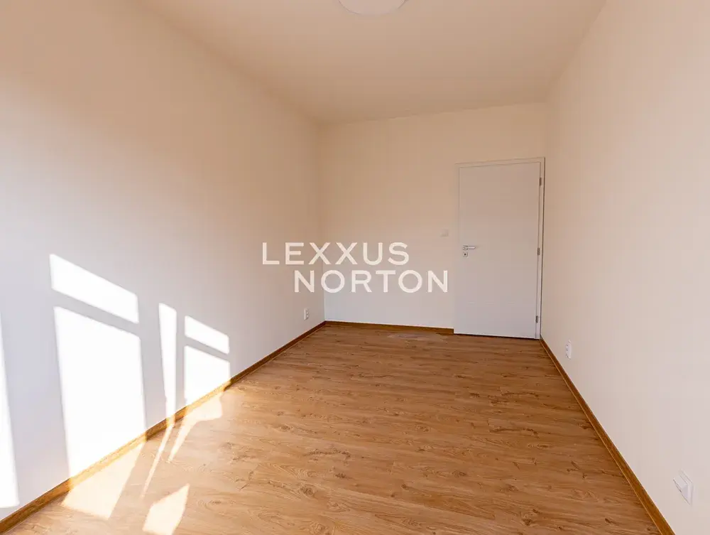 Interiér tvoří vstupní chodba, prostorný obývací pokoj s kuchyňským koutem s přímým vstupem na terasu, 2 ložnice, koupelna a samostatná toaleta. K bytu náleží garážové stání a sklep.