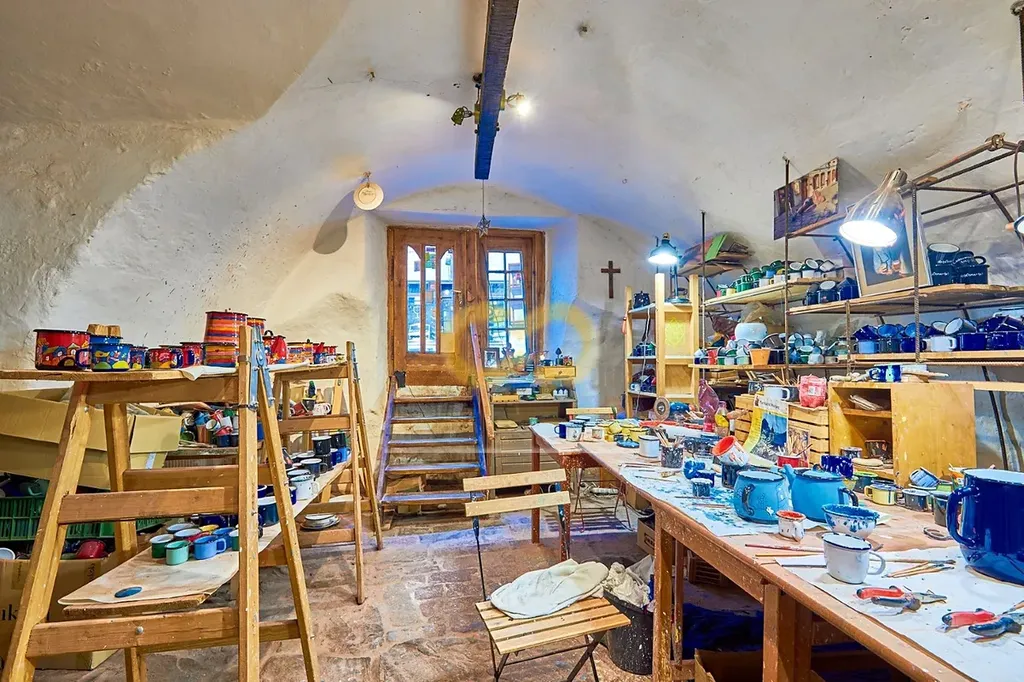 Ve sníženém přízemí s klenbami je komerční prostor, který se přímo nabízí pro kouzelnou kavárnu, cukrárnu nebo prodejnu. A pokud vlastní záměr nemáte, můžete ho pronajímat – aktuálně je v něm keramická dílna.