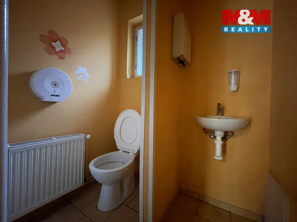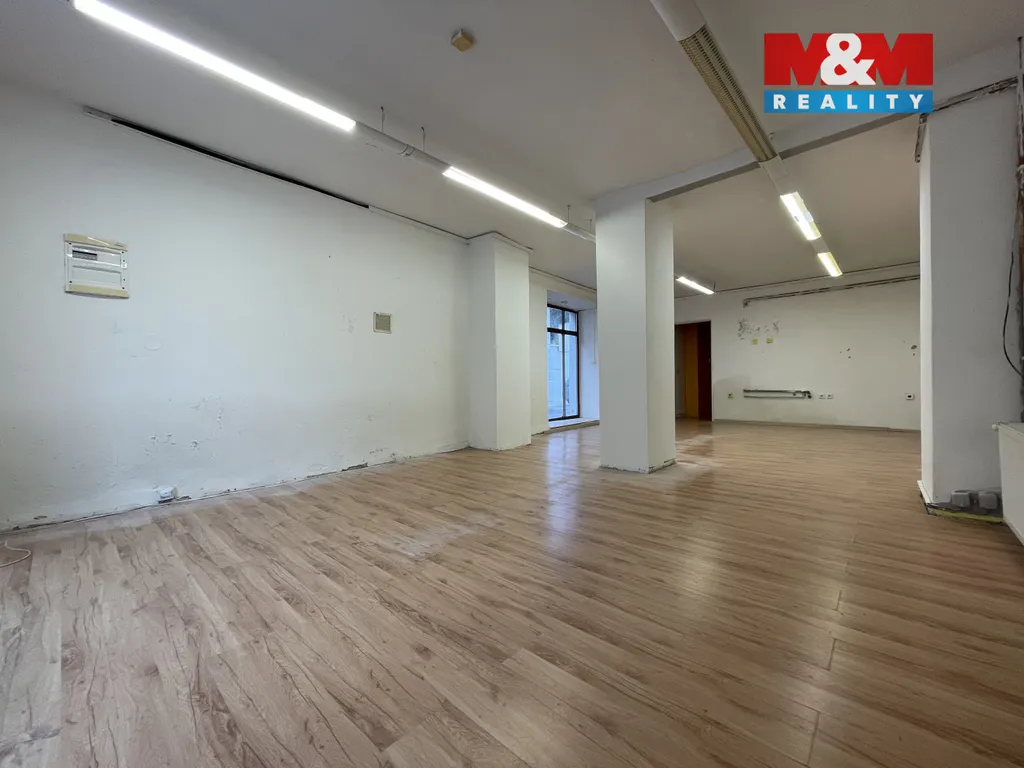 Dispozice zahrnuje hlavní místnost se vstupem a dvěma okny, která jsou vhodná například pro reklamní prezentaci. V zadní části se nachází menší místnost využitelná jako sklad a sociální zázemí (2× WC).