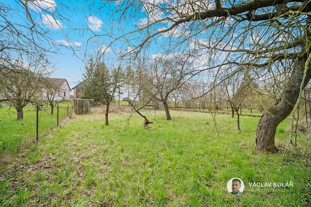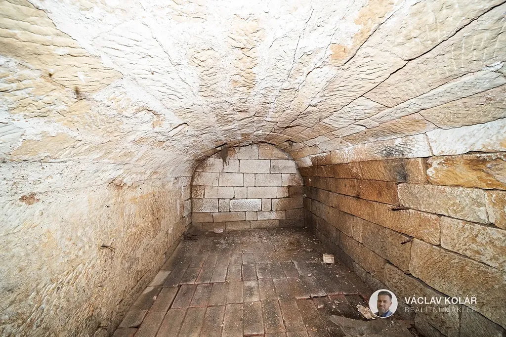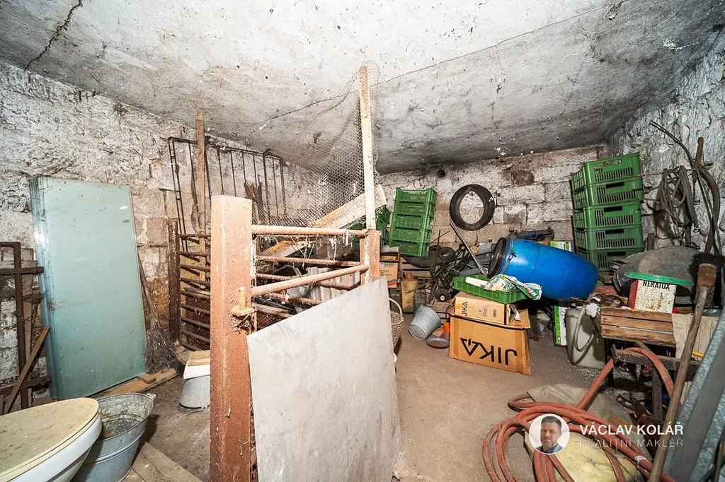Pod domem je klenutá sklep a na pozemku je studna i vodovodní přípojka a nechybí tu ani zahrada s ovocnými stromy.