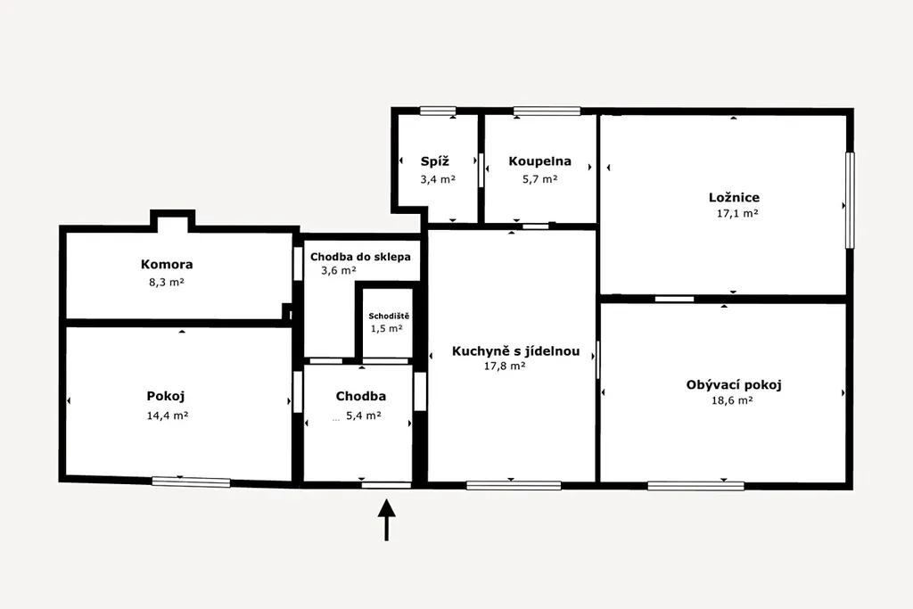 Aktuální dispozice domu je 3 + 1, ale díky tomu, že některé příčky nejsou nosné, si ji můžete upravit například na 3+kk nebo ji dokonce rozšířit do podkroví a získat tak až 6+kk.
