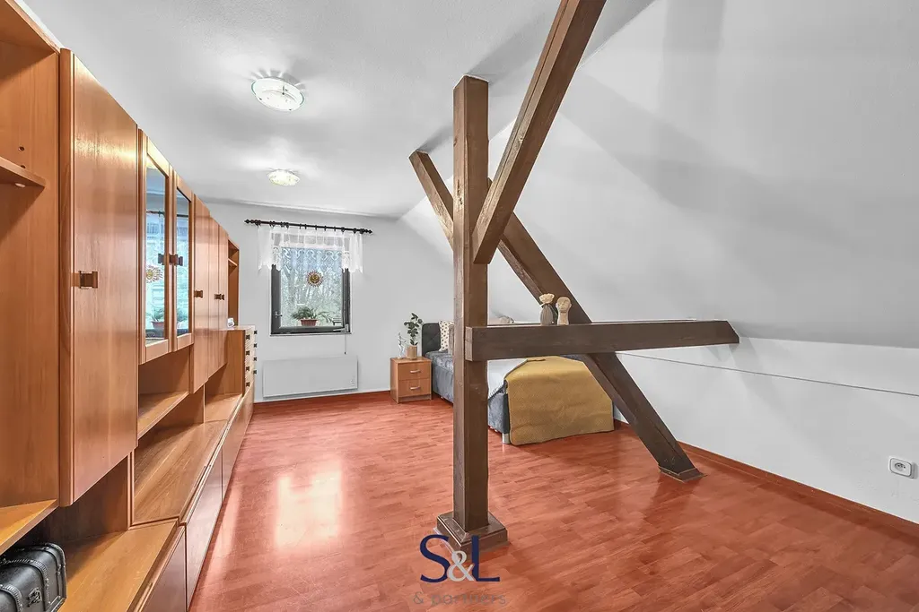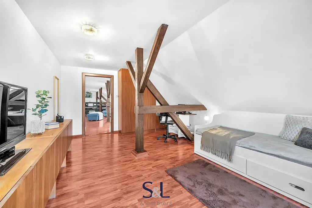 Dům poskytuje skutečně široké možnosti využití, což je jeho největší přidaná hodnota. V přízemí se nachází dispozice 2+1 o výměře 67 m², na kterou navazuje prostorná garáž s regály o velikosti dalších cca 67 m². Tento prostor může sloužit nejen k parkování a jako dílna, ale také jako sklad, provozovna, ateliér, menší obchod nebo zázemí pro podnikání přímo u vašeho domova. Objekt byl navíc původně kolaudován pro provoz prodejny auto-moto součástek, což jeho využitelnost ještě dále rozšiřuje. Díky samostatnému uspořádání lze přízemí využít i jako oddělený byt například pro rodiče, dospělé děti nebo k pronájmu. V podkroví se nachází velkoryse řešený byt o dispozici 3+kk s výměrou přibližně 134 m², který poskytuje dostatek prostoru pro komfortní rodinné bydlení. Dům tak umožňuje vícegenerační soužití bez ztráty soukromí, kombinaci vlastního bydlení s investičním pronájmem nebo propojení domova a podnikání pod jednou střechou.