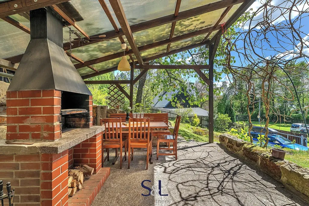 Na pozemku byly provedeny nové terénní úpravy, vybudováno nové parkoviště, opěrné zdi a vysázeny okrasné dřeviny. Zahrada je slunná, orientovaná na jihozápad, ideální k relaxaci i zahradničení. Za domem začíná les, kde si přijdou na své milovníci houbaření.