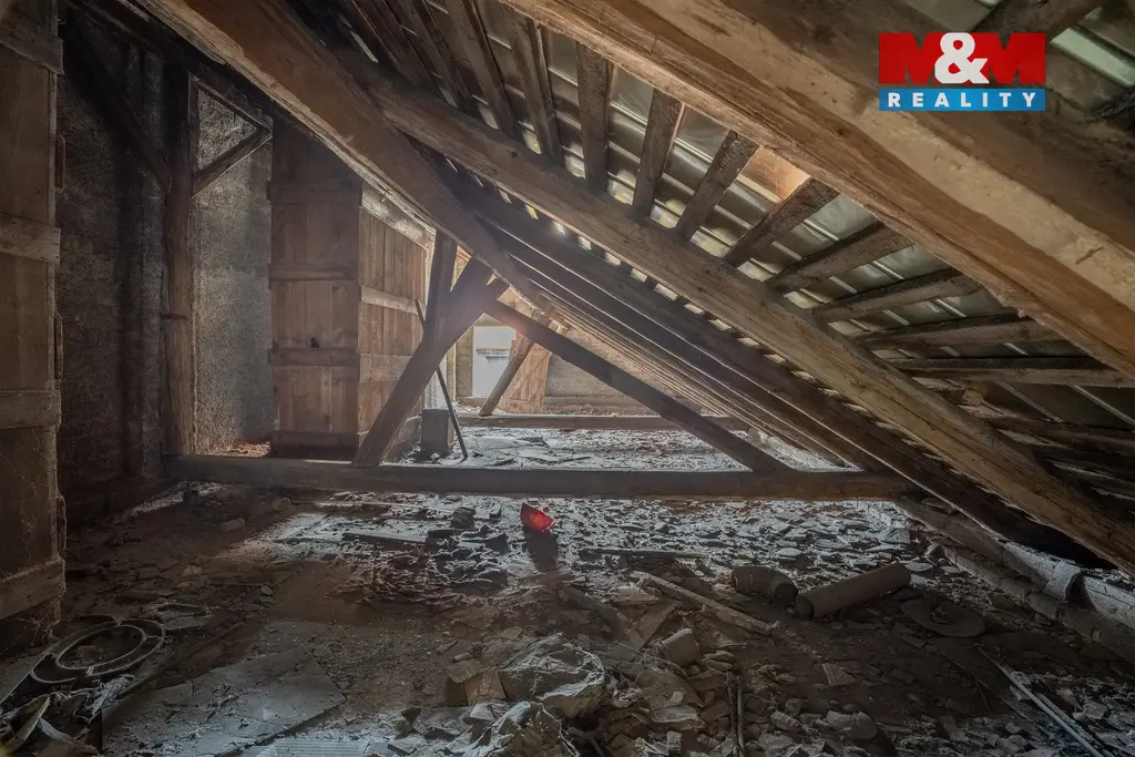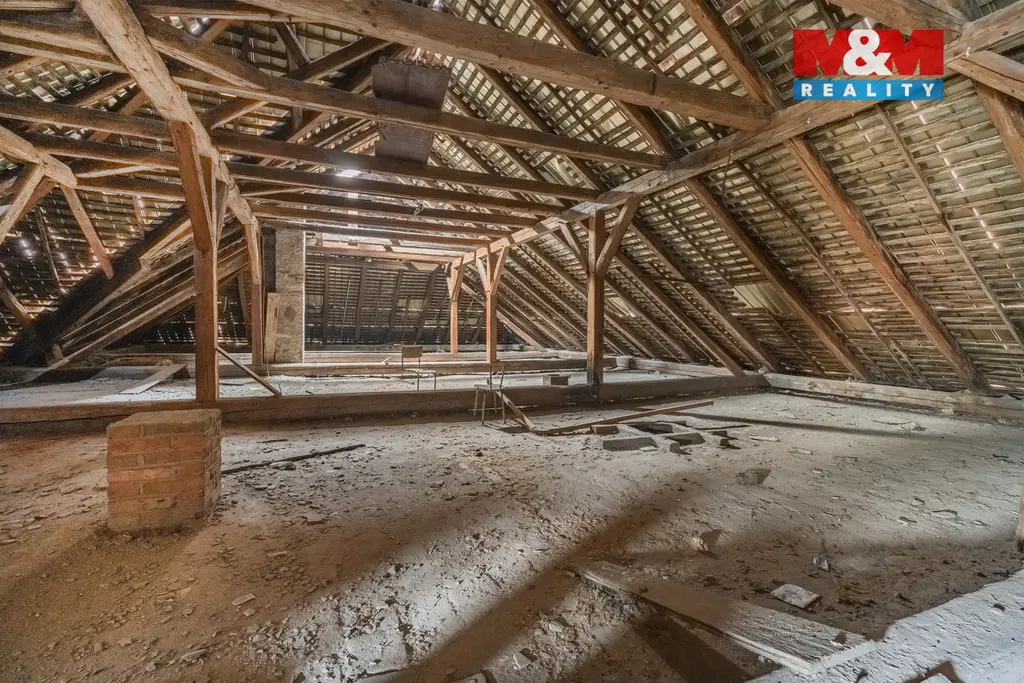 Prostorná půda s velkým potenciálem, vhodná pro krásnou bytovou jednotku s výhledem ideální pro vytvoření ateliéru.