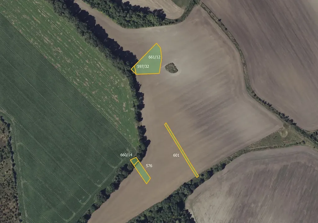 Předmětem prodeje jsou následující parcely: 100/6, 105, 431, 540, 576, 597/32, 601, 660/14, 661/12, 689/3, 769 a 816/42