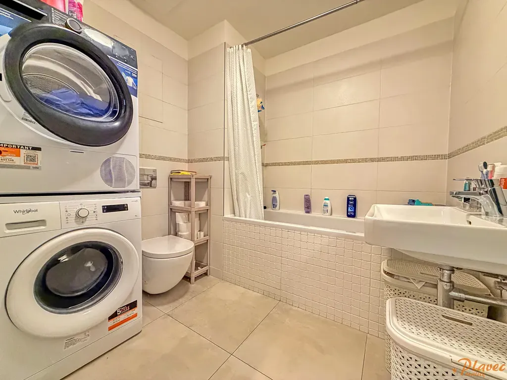 Byt se nachází ve 4. patře / 5 cihlového domu s výtahem. Podlahy jsou dřevěné. Orientace obývacího pokoje je na Východ, pokoj je na Jih. Byt je vybavený kuchyňskou linkou s troubou WHIRLPOOL, mikrovlnkou, lednicí, mrazákem a myčkou GORENJE. V kuchyni je také jídelní stůl se židlemi.
