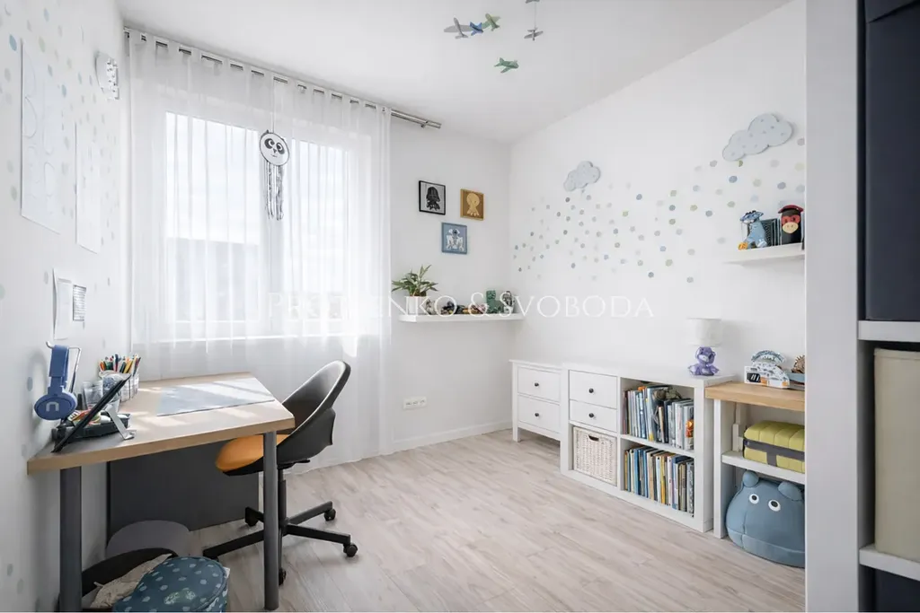 Uvnitř domu vás přivítá promyšlená dispozice 4+kk, navržená tak, aby nabídla komfort každodenního života i dostatek soukromí pro každého člena rodiny. K dispozici je šatna, špajz, koupelna se sprchovým koutem, samostatná toaleta a tři ložnice, které působí klidně, útulně a harmonicky.