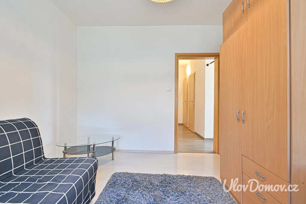 Obývací pokoj je moderně zařízený a disponuje pohovkou, konferenčním stolkem, televizní stěnou a křeslem. Z tohoto pokoje je vstup na druhou lodžii. Ložnice je ponechána nezařízená, což dává novému majiteli možnost přizpůsobit si prostor dle vlastních představ.