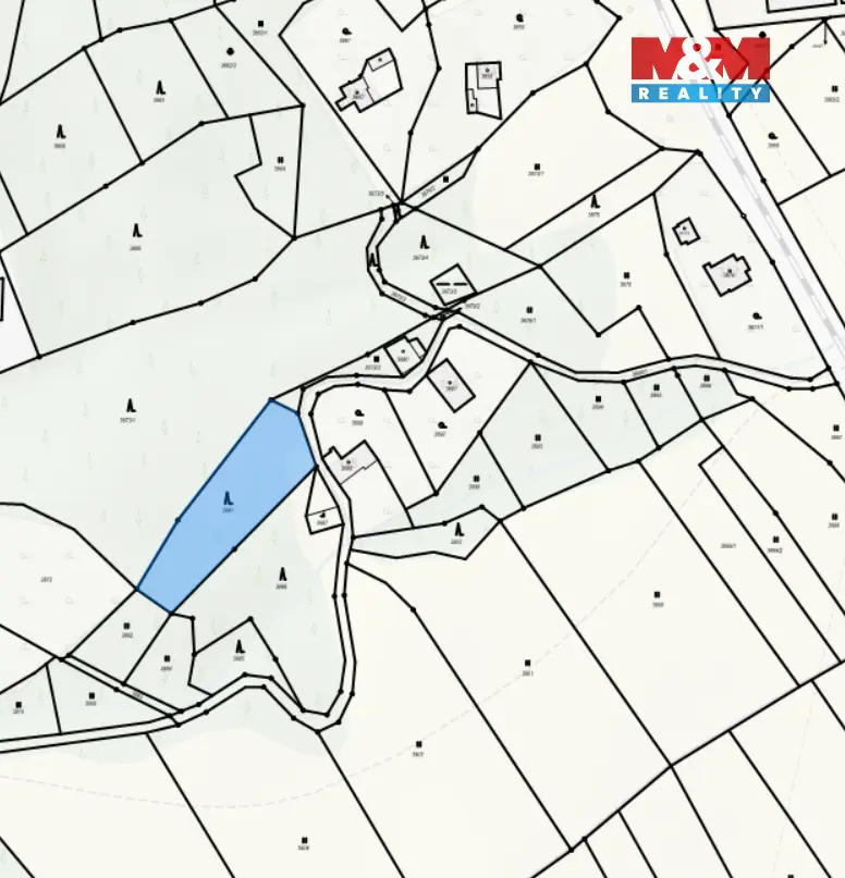 Výborný přístup po lesní cestě přímo k pozemku, což usnadňuje budoucí těžbu i údržbu.