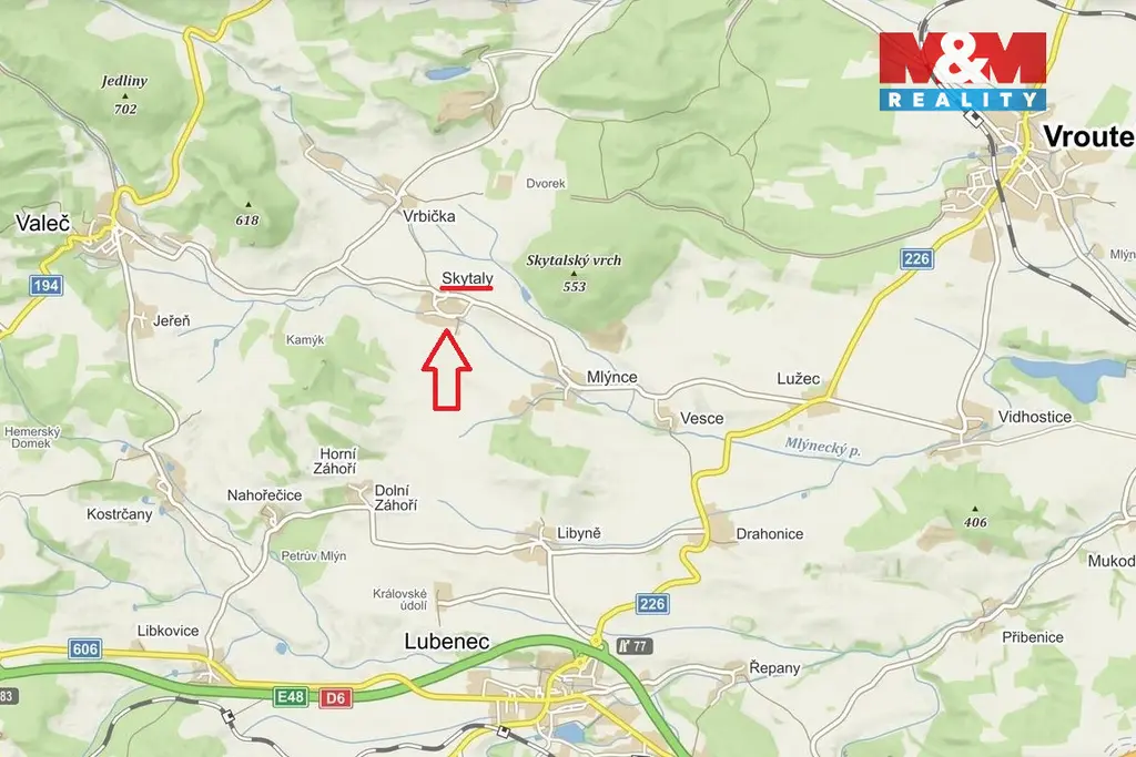 Hledáte pozemek k výstavbě rodinného domu nebo chalupy? Tak tady jeden atraktivní pozemek k bydlení o rozloze 615 m² pro Vás máme v obci Skytaly, místní části města Vroutek. Na pozemku se nachází rozpracovaná základová deska s přivedenou elektřinou, veřejný vodovod najdeme nedaleko pozemku a odpad se bude řešit domácí ČOV. Nemovitost je ideální volbou pro ty, kteří hledají klidnou lokalitu v příjemném prostředí. Stav nemovitosti je dobrý, připravený k okamžitému plánování vašeho vysněného domu či chalupy. Pozemek se nachází v klidné části obce, což zaručuje dostatek soukromí a pohodlí. Obec Skytaly leží na úpatí Doupovských hor a 4 km od obce Valeč, kde se nachází barokní zámek. Veškerou občanskou vybavenost najdeme v 5,5 km vzdáleném městě Vroutek. Skytaly leží 43 km od Karlových Varů, 99 km od Prahy a pouhých 8 km od D6. Nepropásněte tuto jedinečnou příležitost pro investici do budoucnosti vašeho bydlení. Pro více informací nás neváhejte kontaktovat.