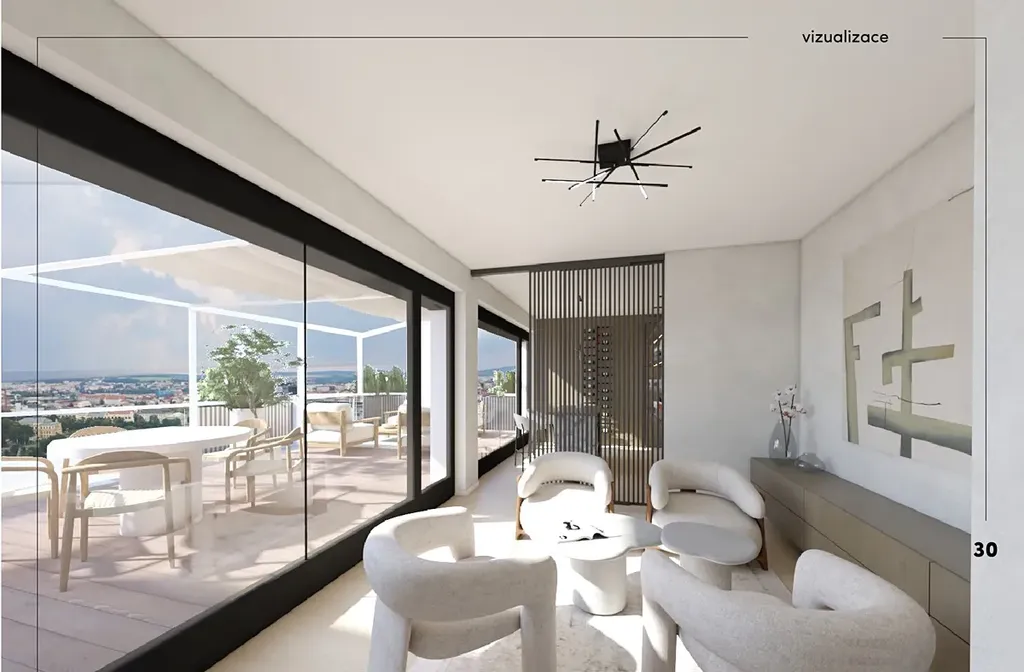 Nabízíme k prodeji poslední volný byt v rezidenci Borský park s jedinečnou dispozicí a krásným výhledem. Byt je nadstandardní o velikosti 231 m² umístěný v 14. nadzemním podlaží. Jedná se o jeden z nejatraktivnějších bytů v projektu – díky své poloze poskytuje opravdu dechberoucí výhledy a dostatečné soukromí.