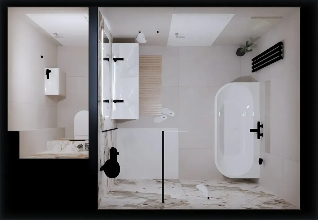 Návrh interiéru bytu je zpracován od firmy ARBYD a koupelny od společnosti ProCeram. Lze využít již hotové návrhy nebo navrhnout své vlastní interiérové řešení.