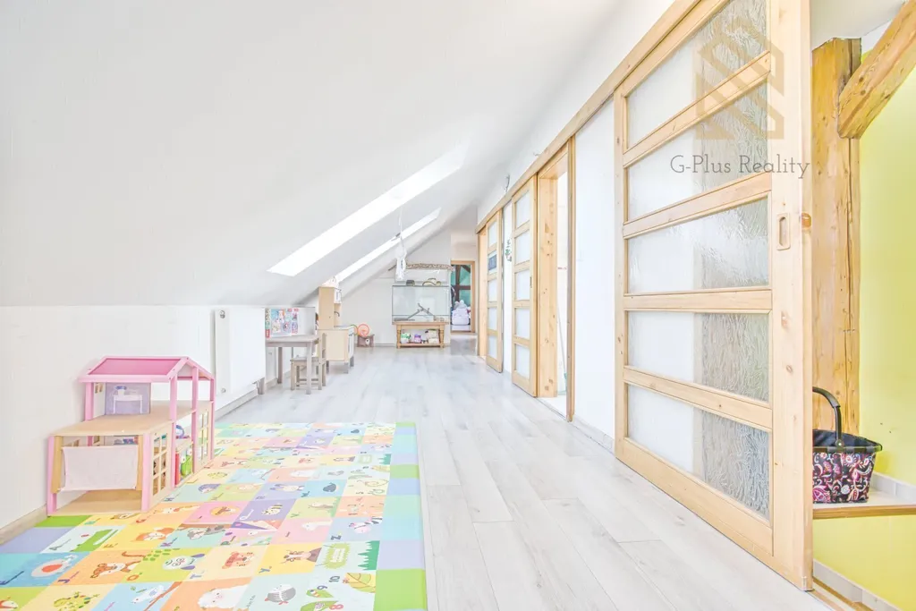 V přízemí domu se nachází bytová jednotka o dispozici 3+1. Ta zahrnuje vstupní chodbu, kuchyň, obývací pokoj, ložnici, koupelnu, technickou místnost s kotlem na tuhá paliva, dílnu a kancelář. V patře je umístěn prostorný a vkusně zrekonstruovaný byt 4+kk o ploše 120 m². Dispozice zahrnuje moderní kuchyň propojenou s obývacím pokojem, ložnici, dva dětské pokoje, šatnu a koupelnu s WC.
