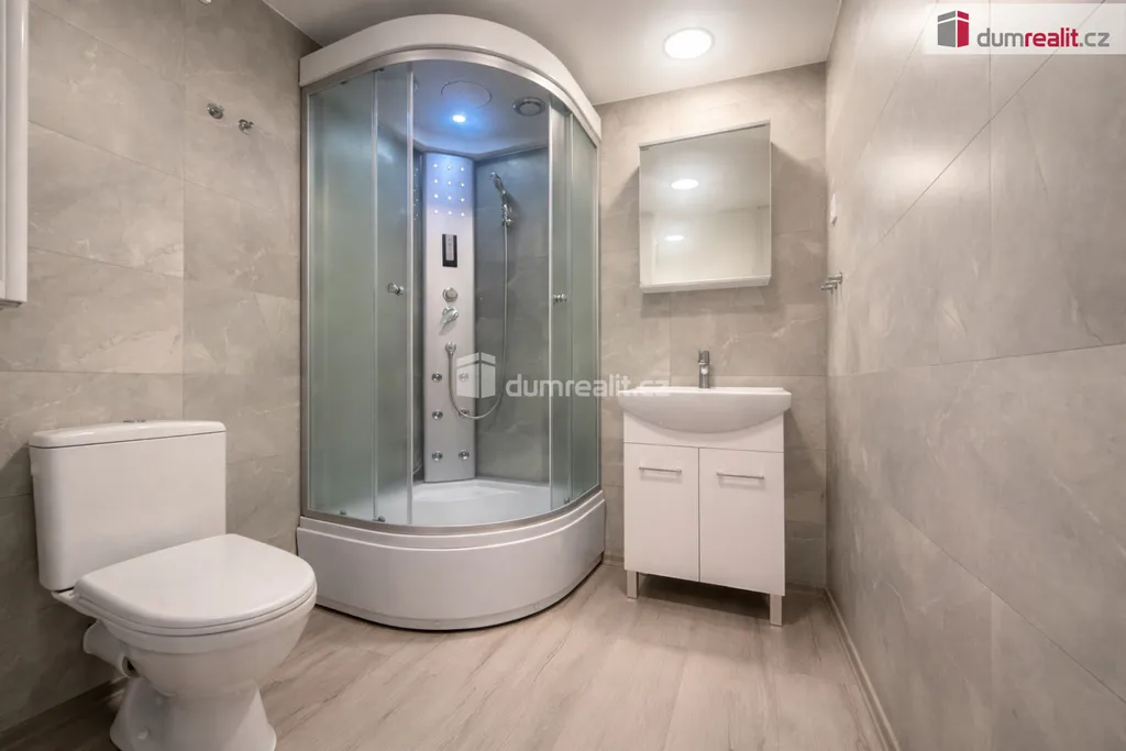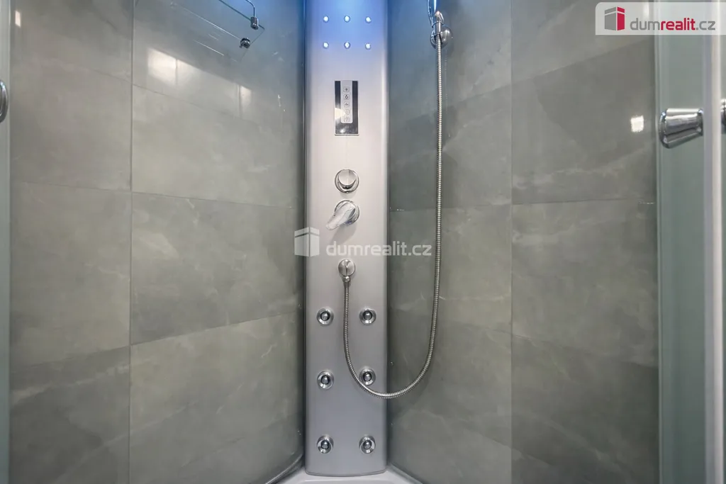 Dominantou bytu je nová kuchyňská linka vybavená mimo jiné myčkou nádobí. Koupelna nabízí nadstandardní sprchový kout s masážními funkcemi, který zajišťuje maximální komfort. Celý byt působí velmi světlým, čistým a moderním dojmem.